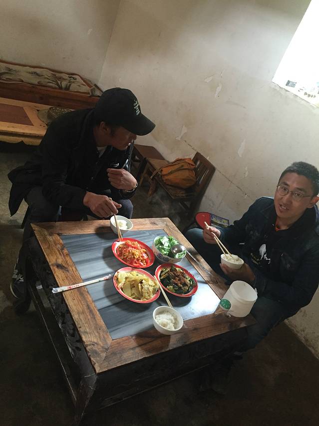 香格里拉一般都是中转站,大家都是在这里中转一下,然后在青旅约好人一起去雨崩之类的景点。由于尼汝村目前还没有开发,知道的人不多,我们只能包车去,奥赛之前联系好了当地司机扎西大哥,费用是行价400元,所以能多搭几个人一起走的话既可以省下费用,人多还热闹一些。原本几十公里的路程,绕来绕去的走了4个小时左右才到洛桑大叔家,到了洛桑大叔家已经将近中午一点钟了,大叔的儿媳妇得知我们还没吃午饭,专门又给大家炒了菜。