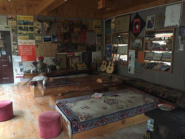 山间藏民云中大爷的小木屋,听大爷说是他一年时间中有半年左右都在山里放牧,冬天的时候才回村子里。大爷在村里的房子租给了一名外国人,听说是来这里转了一圈后就爱上了这个地方,租下了云中大爷的房子,改造之后建成了一个“老外酒吧”,就在洛桑大叔家对面,我们去的时候刚好是淡季,酒吧人不多,一天一个人120元,包三餐,住宿条件要比桑巴大叔家好一些,但是毕竟之前电话里面和洛桑大叔商量好了的,而且大叔一家人也特别热情,就没有再换地方住。刚到尼汝的第一天我和奥赛去酒吧转了圈,一个法国帅哥一个人带着两个混血儿子来这里度端午小长假,清华大学硕士毕业,会六国语言,普通话讲的比我都好,惭愧啊,我们一起喝了杯啤酒,聊了会儿天。