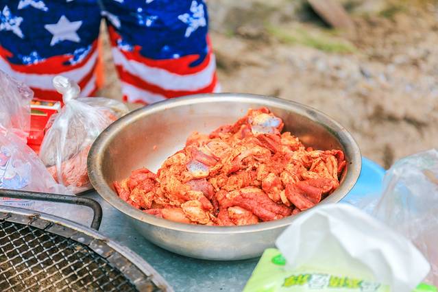 我们找了一家农家乐,我们自己带来的烧烤材料,找老板租了个棚子和烧烤架,一切自己弄!