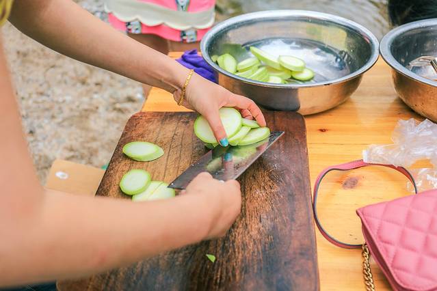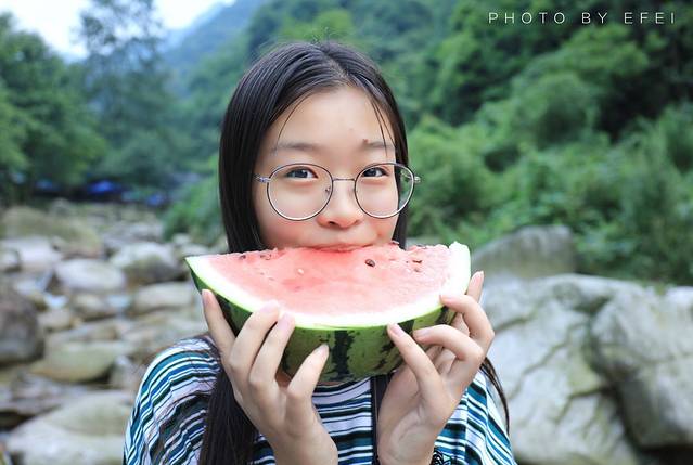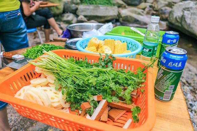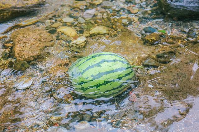 特别赞的是还带了西瓜,餐后水果啊,直接放到冰凉的溪水里冻起。