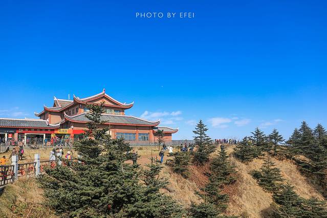 如果你不想爬山,只想上金顶去看风景的话,可以在山下景区客运中心可以买车票。