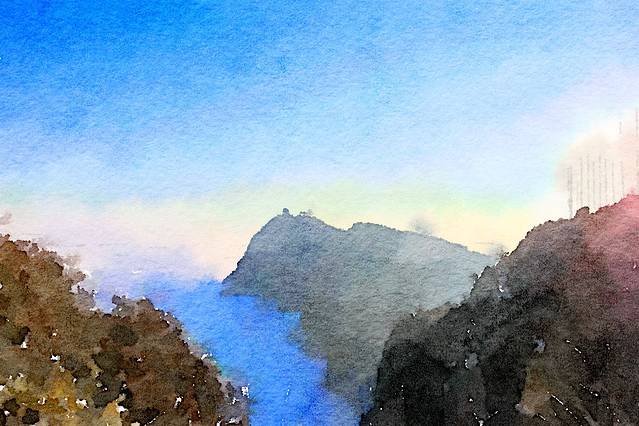 空气中弥漫着白色的雾气,就像仙气缭绕一样。山峰在雾气中若隐若现,好似一幅浓郁的中国山水画作。