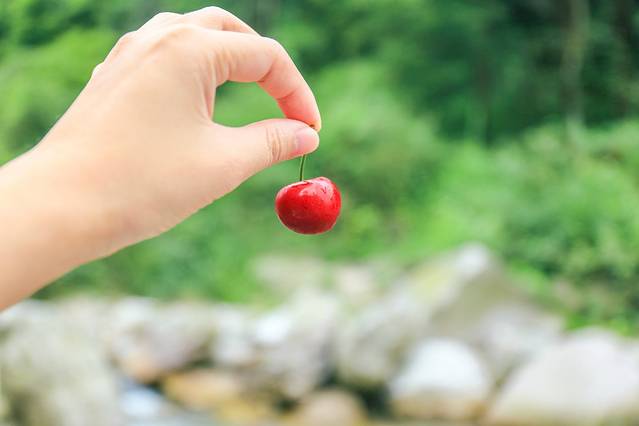 小伙伴们还带了从汉源买回来的车厘子,个大饱满,用溪水洗一洗就可以吃啦。