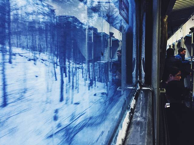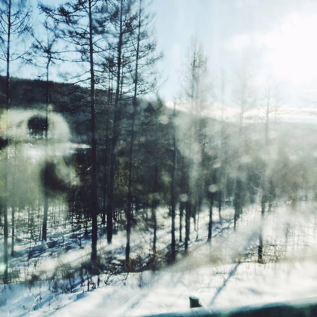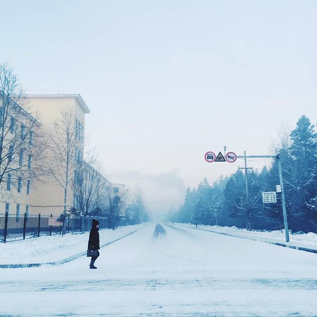 越往北走窗户上的冰就越积越多 窗外看到的房子也越来越矮