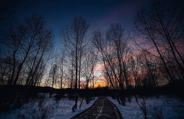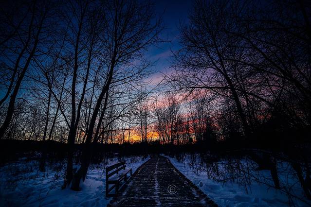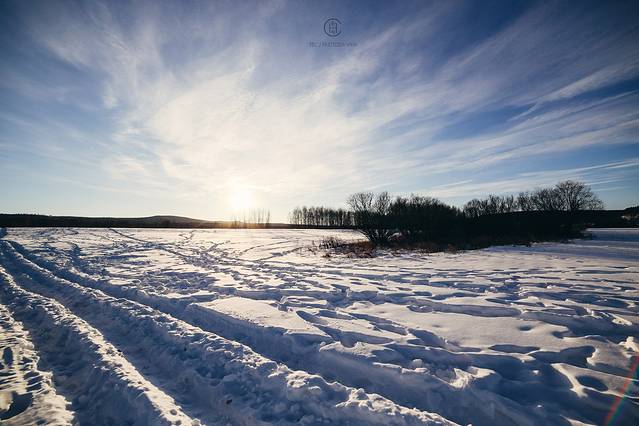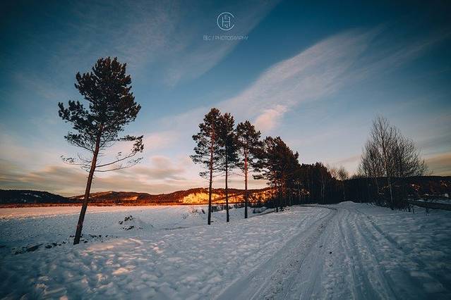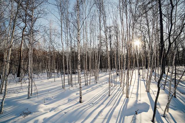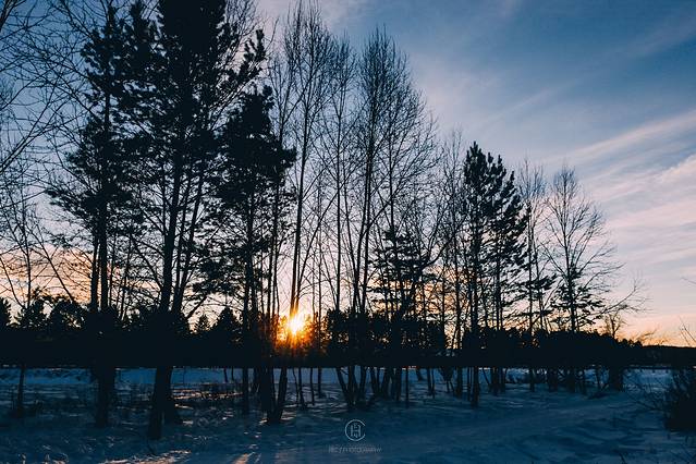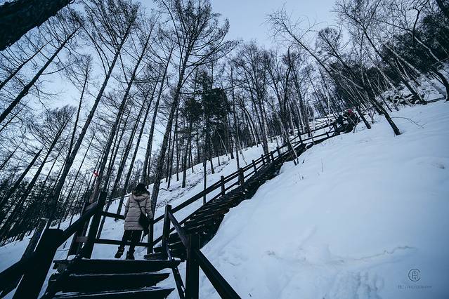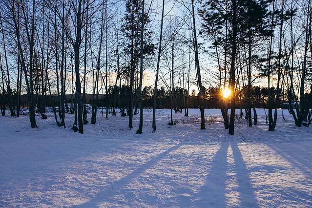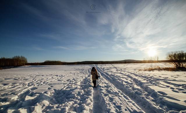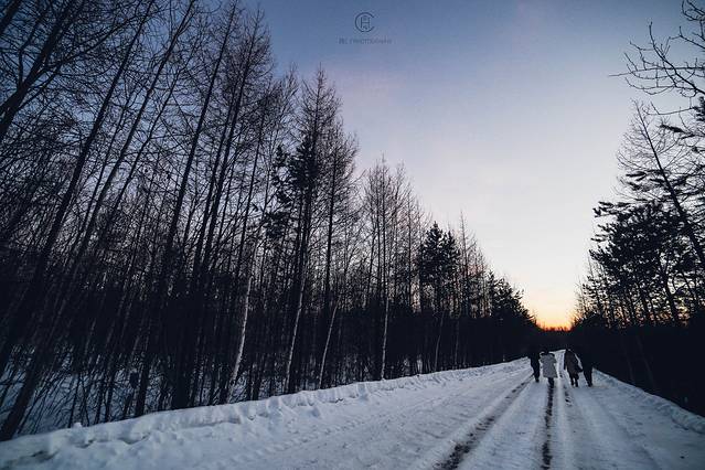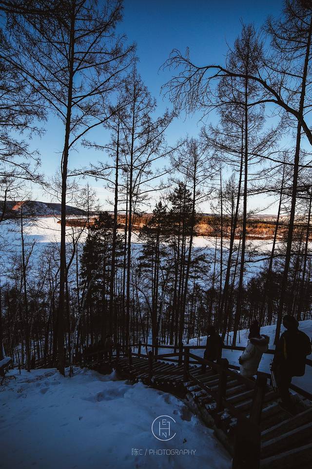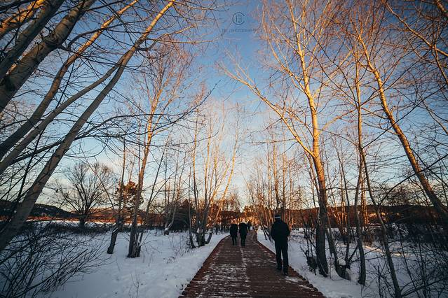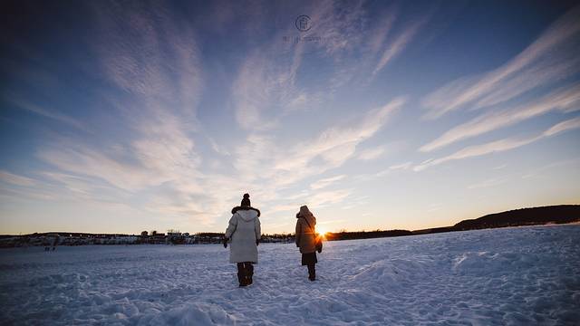 我们追着阳光咯吱咯吱地踩着厚厚的雪享受了一场日落盛宴。