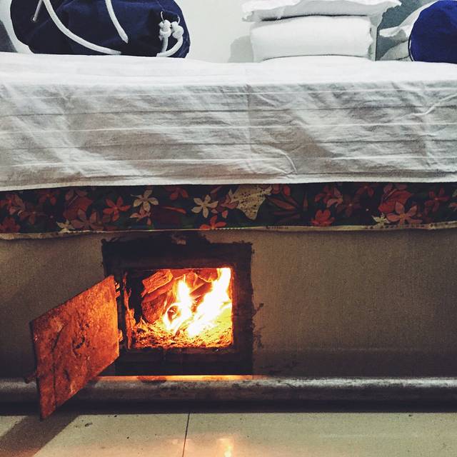 第一次体验北方的炕 还能听到柴火在燃烧的声音