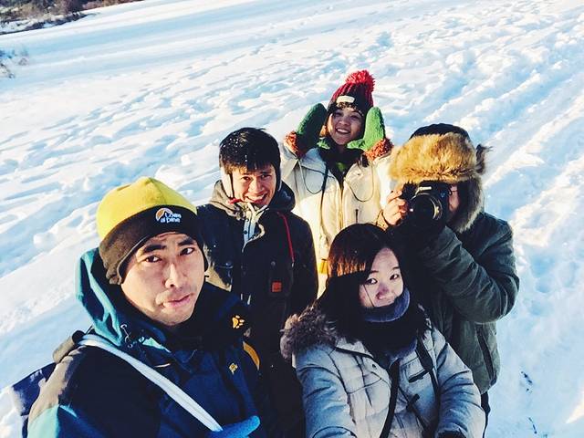 靴子进了雪的几个人还要来张合影