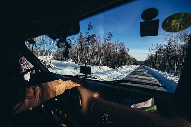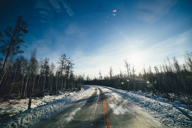 去北极村的路上 一眼看过去都是旷阔的白雪地