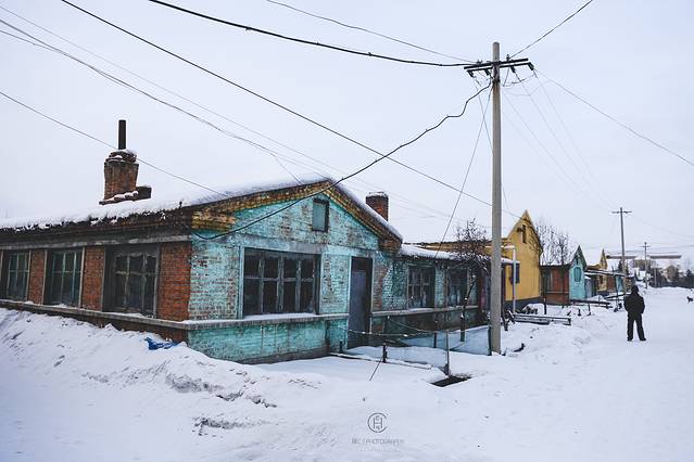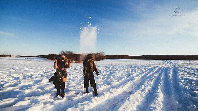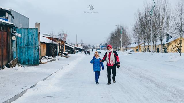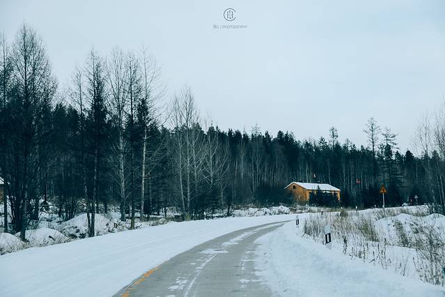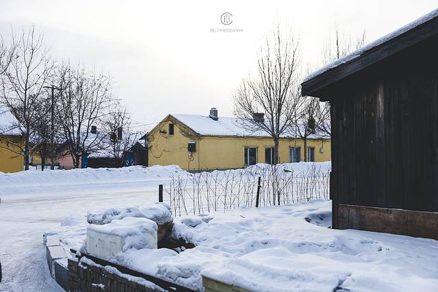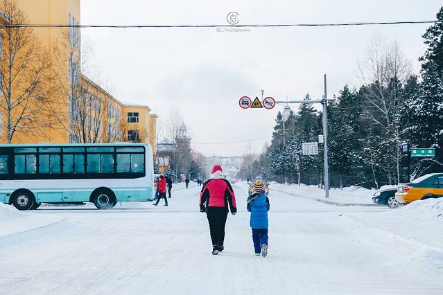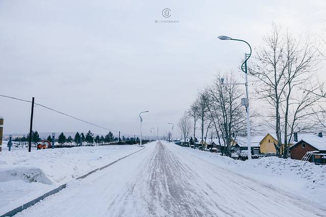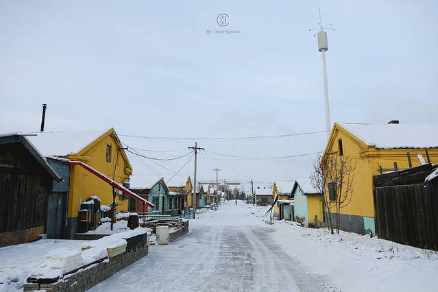 雪白的漠河小镇和这里的色彩融合一起 变身一个童话故事的场景