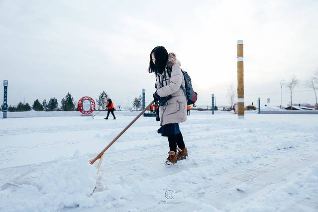 敏姐也想来一把铲雪的乐趣