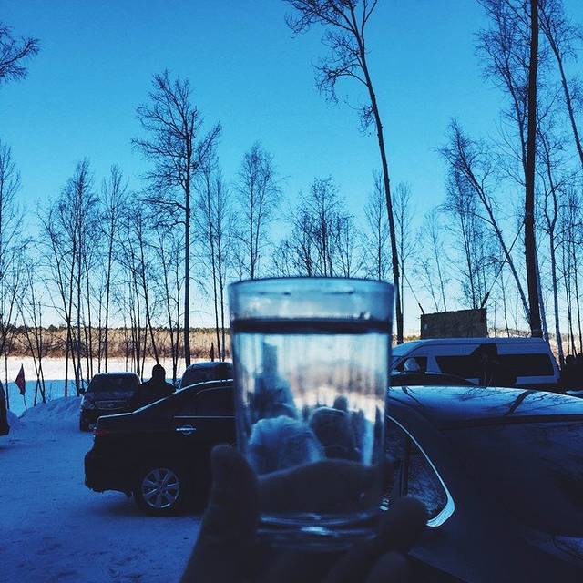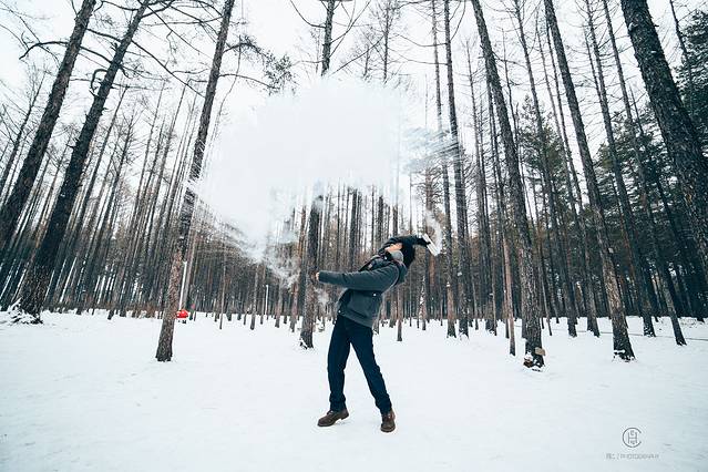 司机高大哥提着一壶热水带我们去白桦林泼水去了