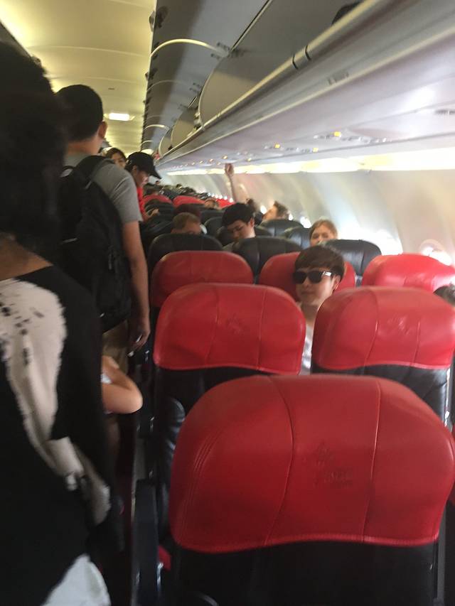 泰国亚航座椅是红色皮座椅,挺舒服,就是小桌板太窄太低