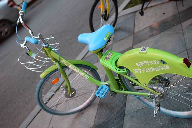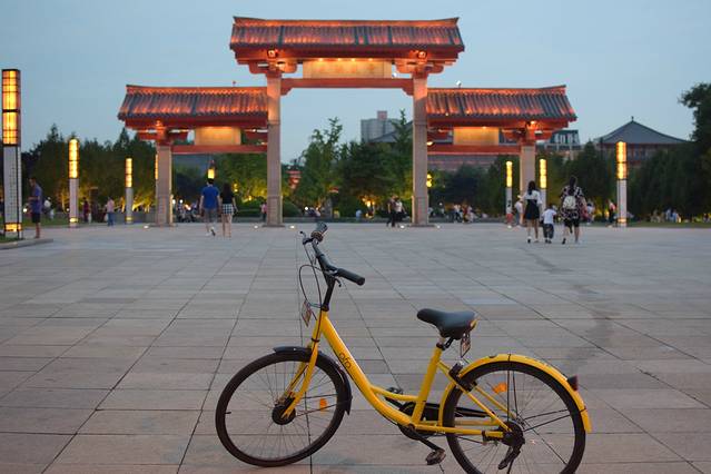 心情明媚 看到共享单车 决定在广场附近溜圈