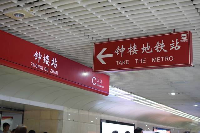 钟楼售票处的旁边就是地铁站 一个人没啥目的的走走