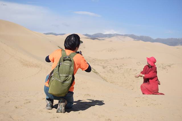 等候观光车时 我和大部队意外分开 阿刺不放心我一个女孩子和我调坐位 被我婉言拒绝