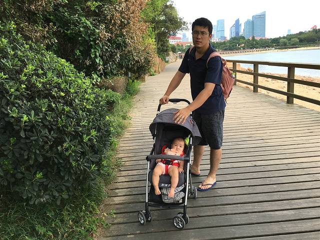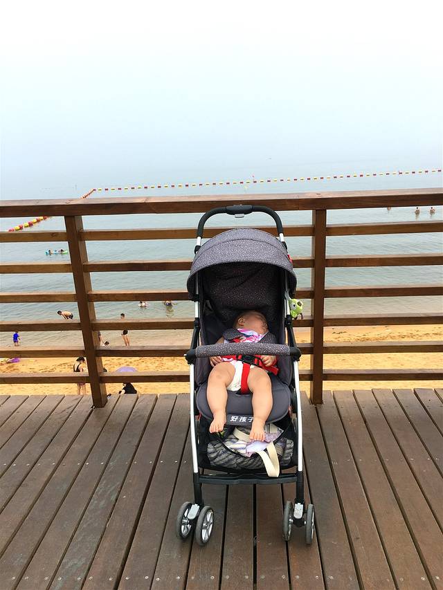 威海是个宁静的小城,早晨9点,推着小车前往海边,很干净清新~仿佛我们一家三口就是本地人~