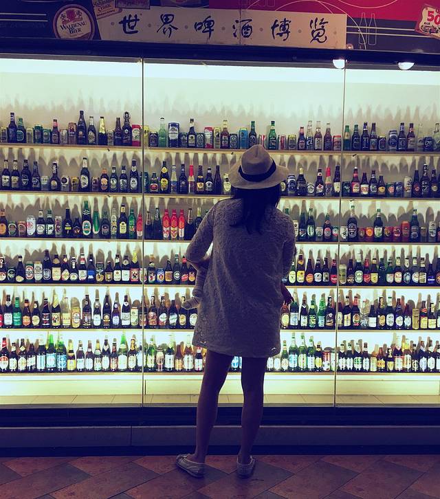 抱着睡着的豌豆公主看看各国的啤酒瓶~哈哈