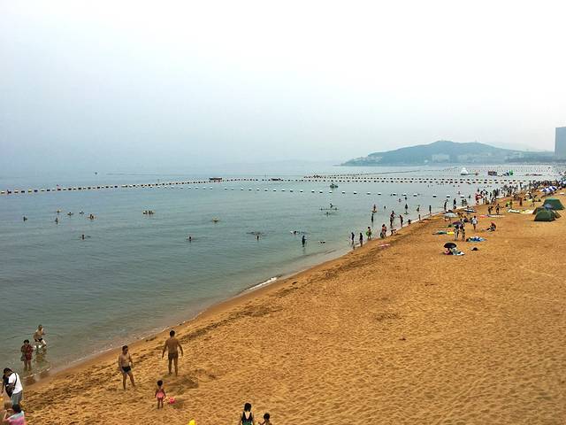 早晨九点的沙滩已经灰常多的人了~浴场里还可以玩各种水上项目~