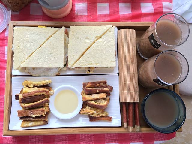 酒店提供的早餐,很有心~避免面包边太干,用蛋汁泡过,轻微煎一下~香甜可口~
