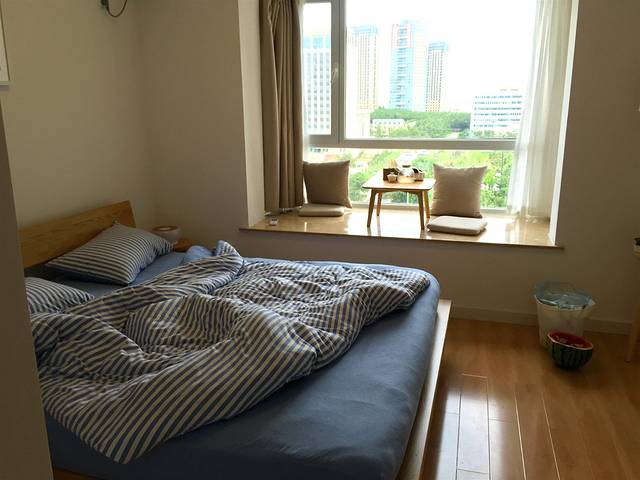 干净温馨~muji风~海边步行十分钟,刷卡上电梯,密码锁进入~安全不用担心~周末有主人手作早餐~工作日有商务楼里的食堂提供早餐~楼下即日韩超市,给娃买点用品真心方便~唯一缺点就是离中心城区有点远,自行前往可能要坐一段时间的公交~