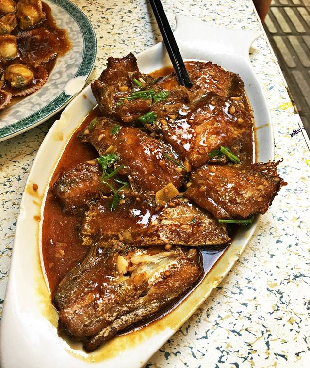红烧刀鱼~是不是平时吃的带鱼呀~肉质更厚一点~就在街边坐着吃~~~