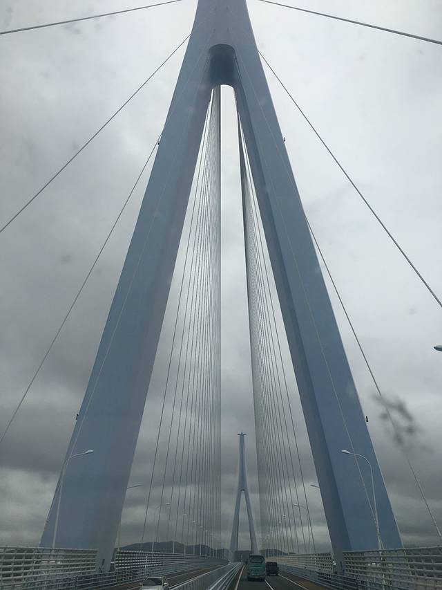 于是采取传统方式,在宁波站附近的汽车南站买了车船联票,先坐车到舟山朱家尖,再坐船到普陀山。从宁波到舟山只有一条路,就是非常有名的跨海大桥, 会穿过几个小岛,也是别有一番风景。