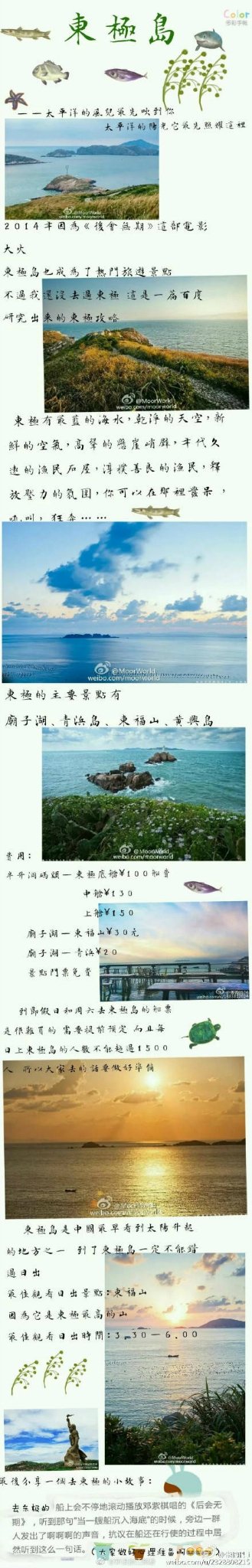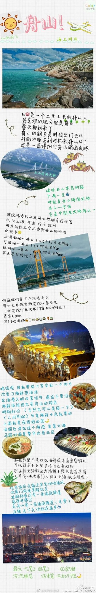 本次旅游的攻略一定要感谢微博上的一位po主,因为太多的转载已经不知道最早是谁发表的了,看内容应该是舟山本地人,真的非常详细,值得分享。