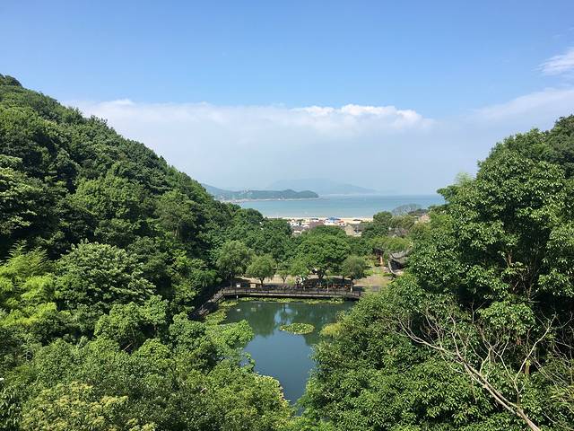 据说不到安期峰就白来桃花岛了,所以尽管日头有点晒,我们也不想爬山了,但是还是花了45元进来,没有爬去山顶,只到了金麟宝塔。