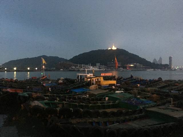 其实从舟山有好几个码头可以有船去普陀山,但是我们买的车船联票是从朱家尖坐船。朱家尖也是一个很有名的景点,可惜我们时间有限,这次就玩不了了,只是坐车经过了慈航广场,这里被称为“小布达拉宫”,看起来的确有那么点意思。
