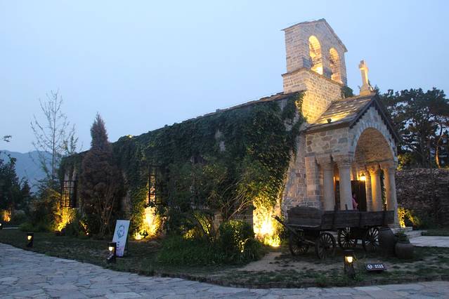 山顶教堂是我们最后玩的一个地方,因为地理位置比较高,方便我们晚上看夜景,爬上去的时候是下午7点天还特别亮,我们用教堂外面的望远镜可以把司马台长城看得特别清楚,山顶教堂的另一个出口就可以将整个古北水镇拍的非常全~是个拍全景的好地方