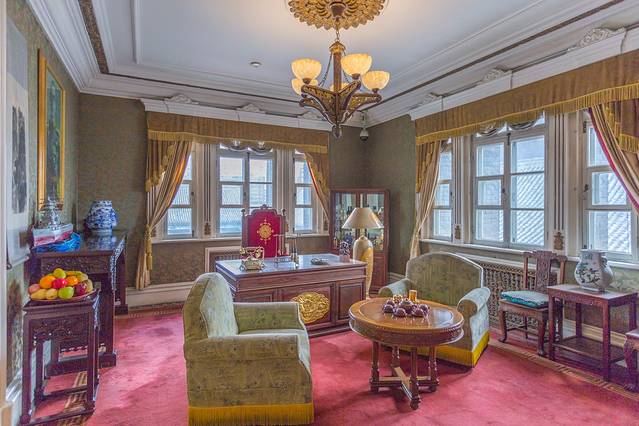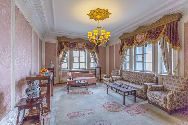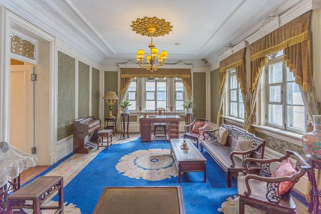 二楼原设计为溥仪和末代皇后婉容的寝宫,因溥仪疑心日本人在同德殿安装窃听设备而从未使用。