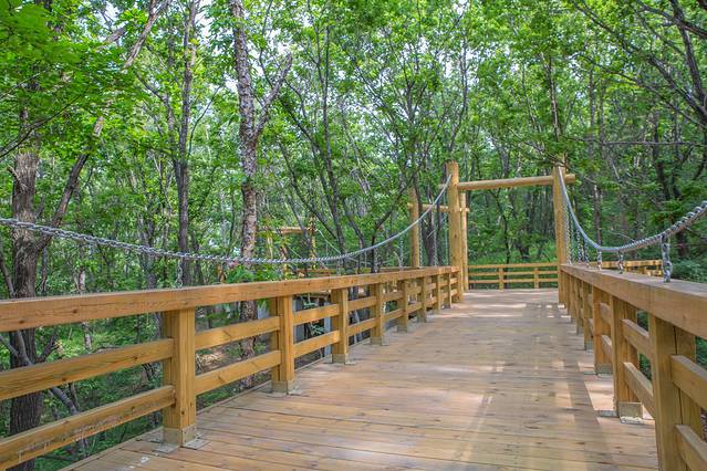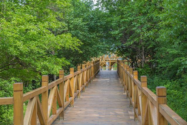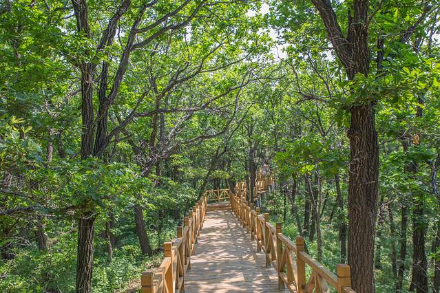 这里刚刚建成了最美木栈道,这条木栈道建在莲花山中。漫步其中,感觉进入了天然氧吧。