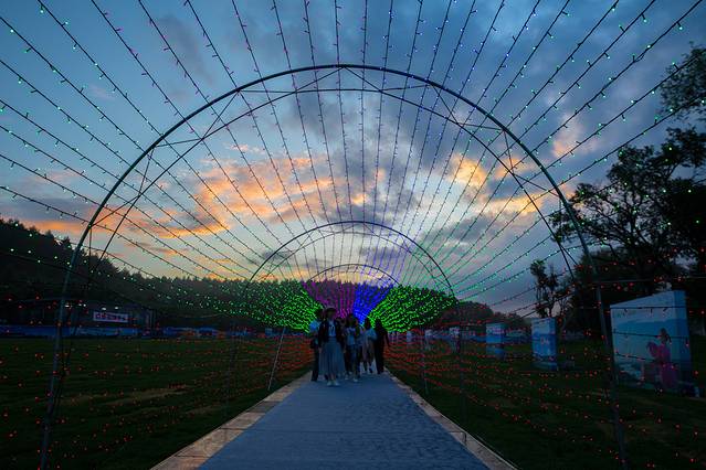净月潭,因其弯月状而得名,因山清水秀而闻名。净月潭以良好的森林生态环境为主体,伴随碧松净月塔楼、太平钟楼等人文景观,现如今也成为了长春最大的森林公园。并因其优越的地理环境成为了长春市消夏节和长春冰雪节的主场地。22日晚,第十一届中国长春消夏节就在此开幕。此时,也在这里看到了最美的晚霞。