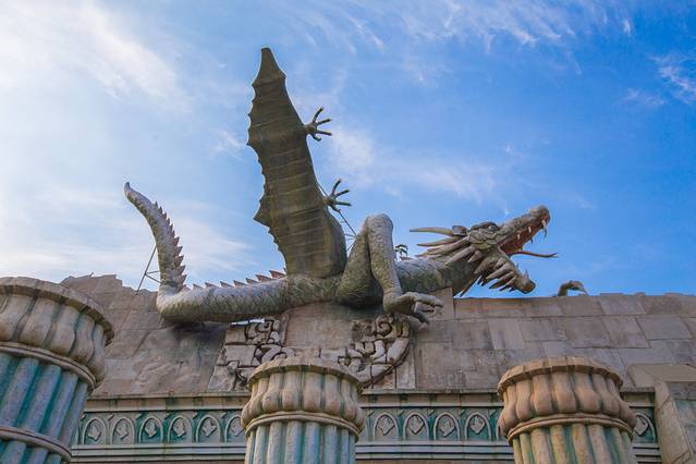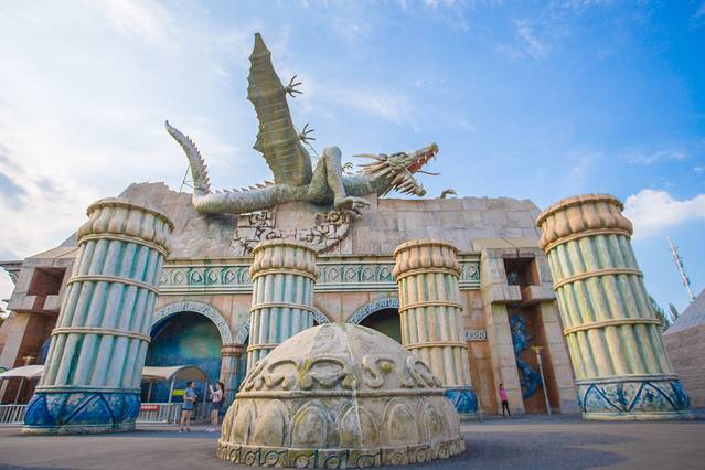 景区比较有意思的是这里千奇百怪的建筑,有形似巨大水晶的巨幕影院、断壁残垣的古堡惊魂(鬼屋)、上演火山爆发特效的“鹰神山”、外形科幻感十足的急速穿梭馆等。让你在感受电影特效的