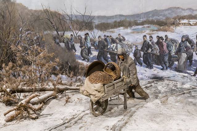 离开历史建筑群,会看到1889年美国生产的蒸汽机车头,机车对面即是东北沦陷史陈列馆,这里陈列的上千件历史文物,向人们诉说着日本侵略中国东北的史实。