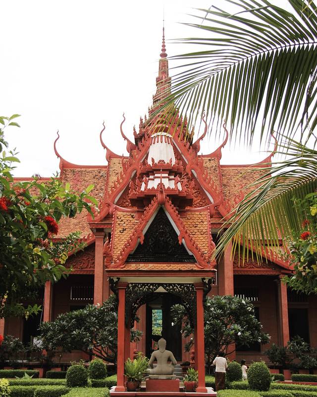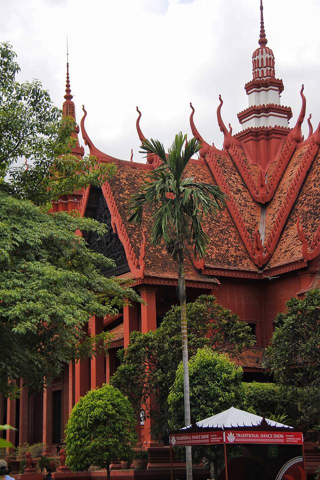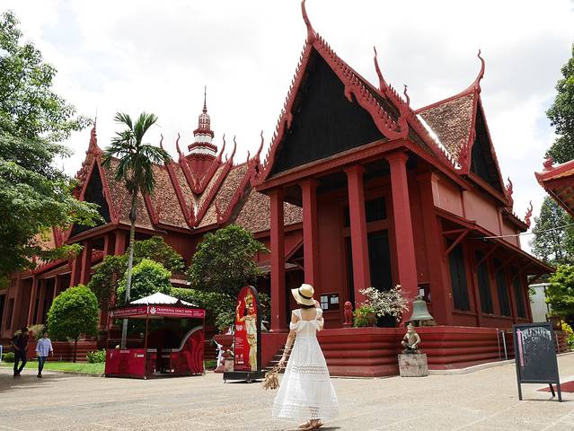 柬埔寨国家博物馆建于1913年,目前馆内收藏有4-10世纪、吴哥王朝等时期的手工艺品及雕刻艺术品,以及很多吴哥窟雕塑的真品。博物馆真的很漂亮,红艳艳的建筑,这里见证了柬埔寨国家的历史和变迁。