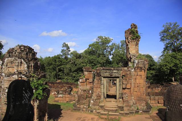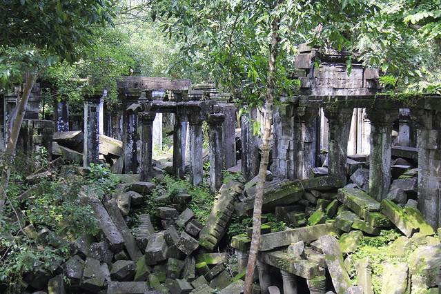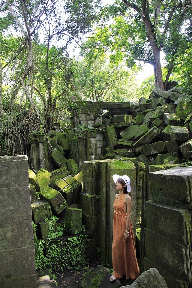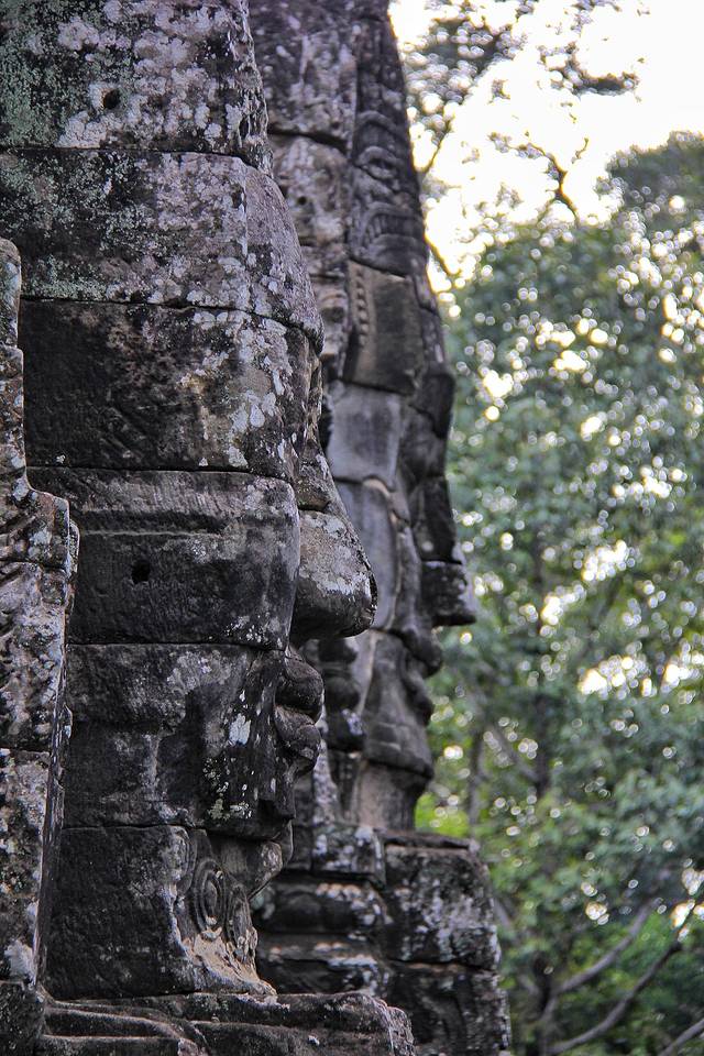 巴戎寺,位于吴哥通王城内,就是大家所说的大吴哥城内,虽然已经是断壁残垣,但是石壁上仍然保留有表情丰富的面部雕刻,其中以“高棉的微笑”最为著名。这里有几百个面带微笑的佛像,面朝四面八方,大小不一,高矮不同,他们都用最虔诚的微笑欢迎你的到来......