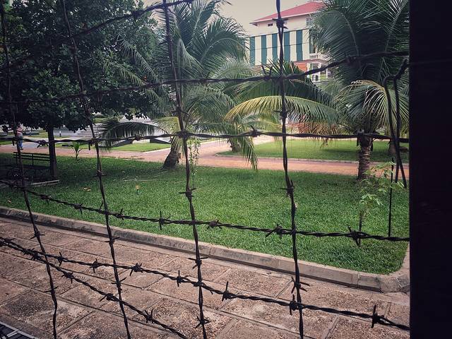 慢慢走出监狱博物馆,我们三个女生都没有说话,心情非常的压抑....这个事情就只是发生在我们出生的时候,时间那么的近,那个时候中国已经过上了太平的日子,而柬埔寨的人民却正在饱受着内战的折磨摧残。我一直在感叹,为什么人可以那么的残忍,怎么能对自己的同胞下的去手,如果是国家和国家的战争,我勉强可以理解,但是对自己的国人下手,我真的是不能理解...什么都不可怕,人心才是最可怕的。