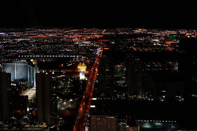 位于拉斯维加斯最北端的高塔酒店,又叫平流层酒店,是拉斯维加斯最高的建筑物,1149英尺的高塔观赏拉斯维加斯的夜景再好不过了,酒店住客只要$5/人。但这里更为著名的就是高塔上的游乐设施,建于高塔最顶层的游乐场有这全世界最刺激的跳楼机(Skyjump)。