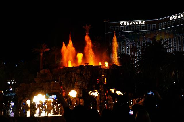 米拉奇酒店外的人造火山的火山喷发秀每天都会吸引很多人。火山爆发时火光和烟雾喷向30米的高空,融化的岩浆刹时倾泻而下,整个雨林顿时成了火海……值得一看!