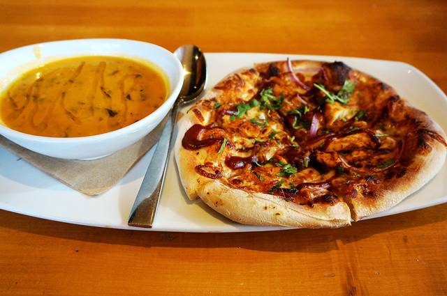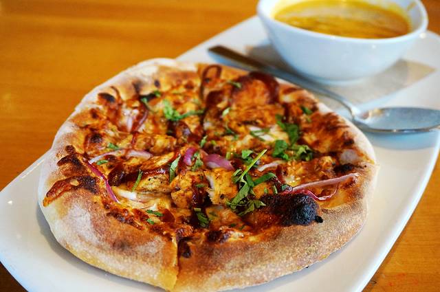 #披萨# 披萨味道不错,大小也合适,正好一人份,还配了汤。