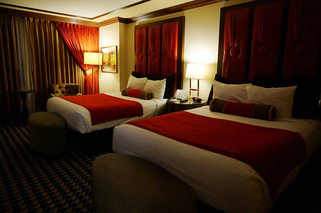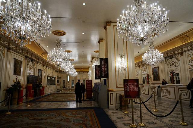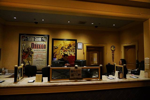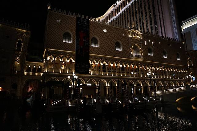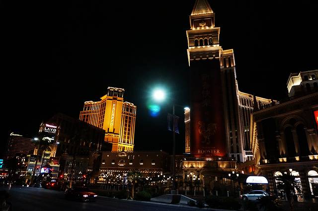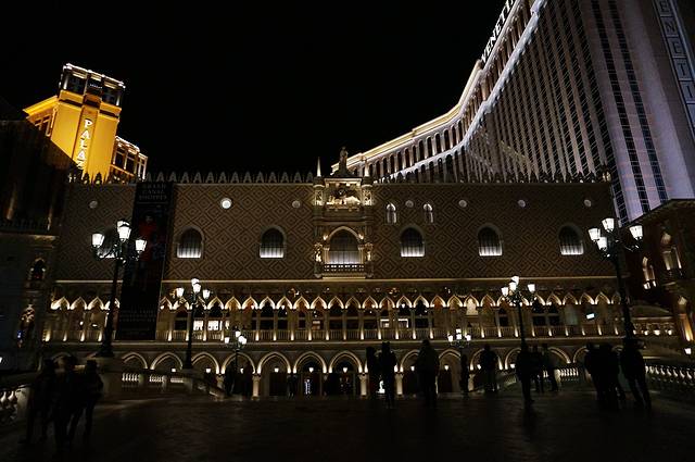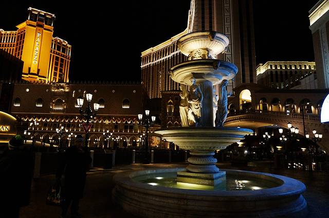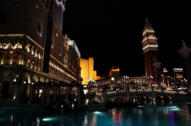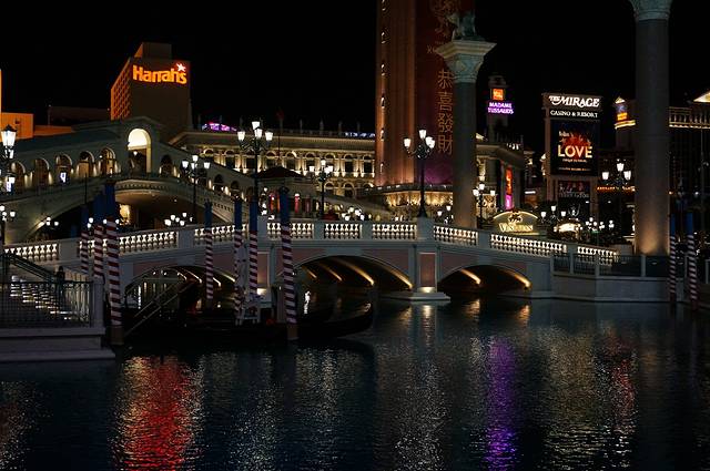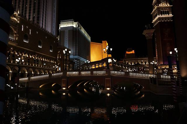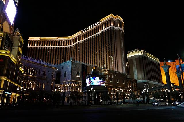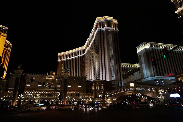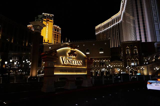 威尼斯人酒店是赌城大道上,占地11,000平方米,位于拉斯韦加斯大道东则,连同新落成的拉斯韦加斯宫殿(The Palazzo),已经成为全球最大酒店,拥有7,128间大小不同的酒店套房。酒店以威尼斯水乡为主題,仿造了威尼斯的著名的钟楼、圣马可广场等,仿造虽然不能以假乱真,但是的确令人惊叹。特别是酒店内部的人造大运河,室内景色宛如白天。你甚至可以包上一艘贡多拉,漫游大运河之中,在欣赏景色的同时,别忘记品尝一下广场小推车上美味的意大利冰激凌。