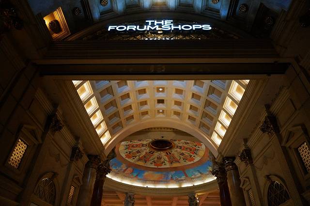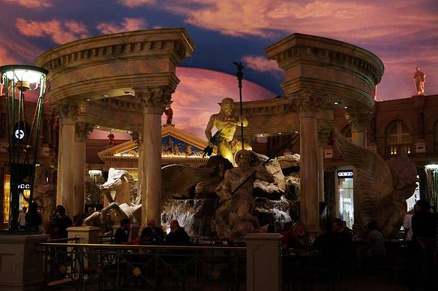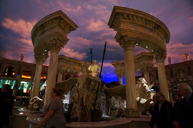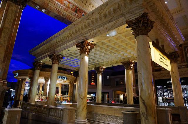凯撒宫酒店以罗马式风格建造,各种仿造的大理石雕塑在游客眼前呈现出一个小型罗马,正门精美的喷泉和酒店内的高档购物商城Forum Shops则是这座酒店最吸引人的地方。