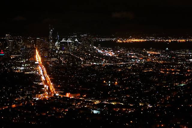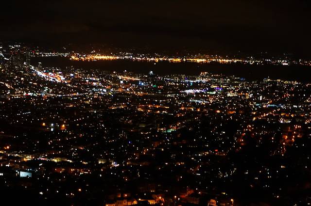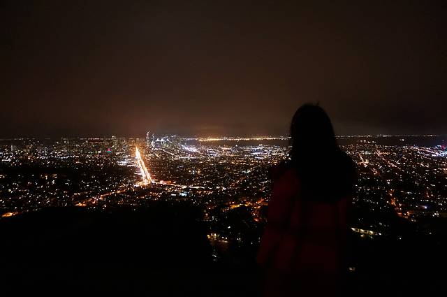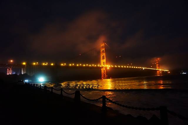 双子峰看旧金山夜景果然棒棒哒~能比较清除能看清整个旧金山的市容,是当地的最高点。左边远方是金门大桥,最灯火通明、车流最多的是旧金山主街Market St,右边离自己比较近的飘着巨大彩虹旗的地方是卡斯楚区域等。不过山顶风大,而且容易起雾,尤其是阴雨天。起了雾开车一定要注意安全。