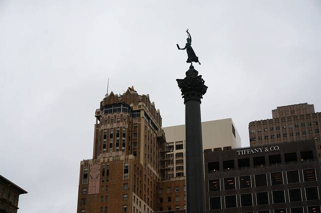 这座广场的设立虽与战争毫无关系,但立在广场中央圆柱顶端的胜利女神雕像,却是为了纪念在美西战争中于马尼拉湾得胜的海军上将杜威而建的。