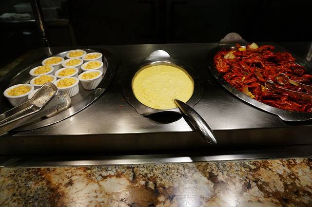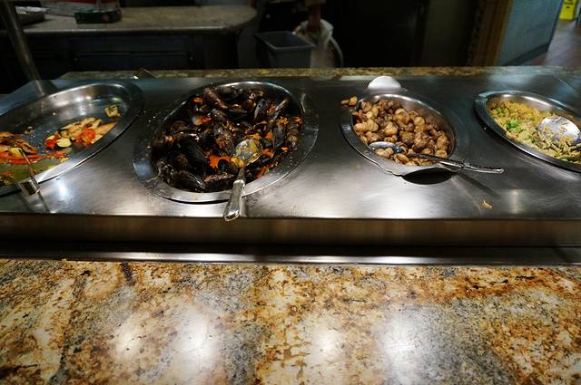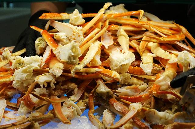 最大的亮点莫过于晚餐的#阿拉斯加雪蟹腿#,也是最热门的,晚上高峰时段还需要排队取。个头超大,蟹肉也很好取出,有点淡淡的咸味,不需要蘸料就很好吃了,很新鲜,一点不会腥。