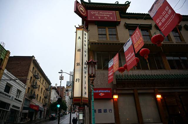 旧金山是亚洲以外最大的中国人聚集区之一,中国人在19世纪来到旧金山淘金,可惜当时的大部分人淘到的却是种族歧视,并且被隔离到现在的中国城区域。但中国城也因为如此能够完全地自给自足,现在这里有中文服务的银行,中文学校,中文报社、餐馆等。