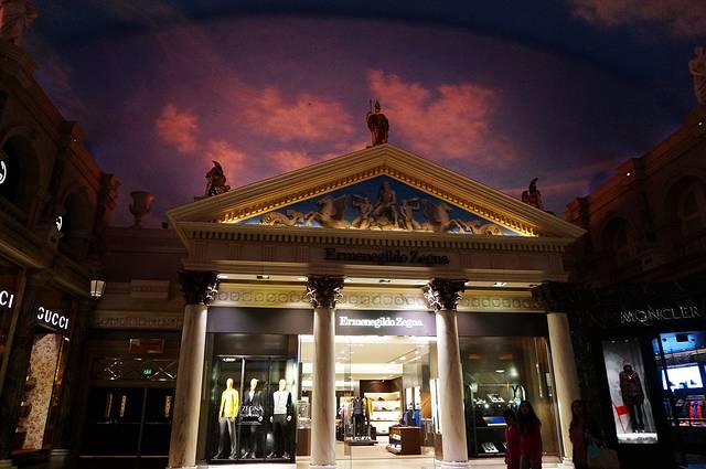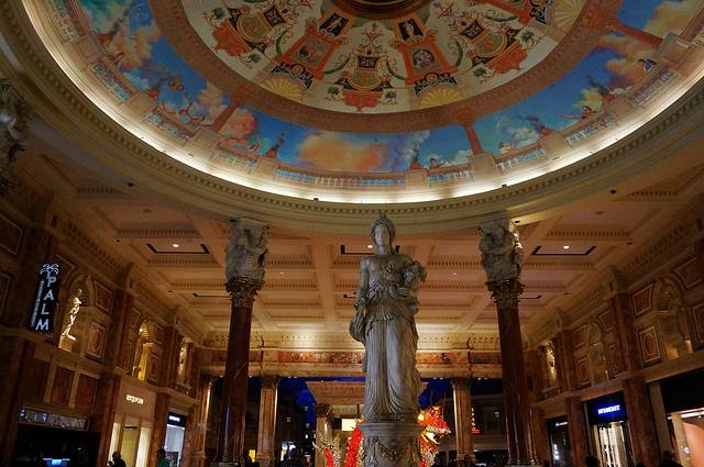酒店以罗马式风格建造,各种仿造的大理石雕塑在游客眼前呈现出一个小型罗马,环境没的说,真的仿佛自己在意大利。也是购物的圣地,品牌很全,但是没什么折扣。