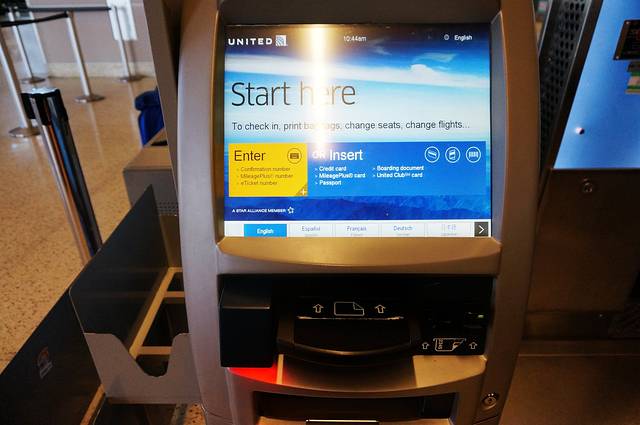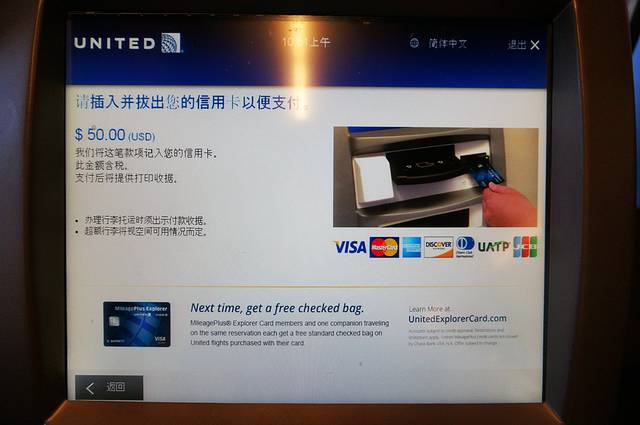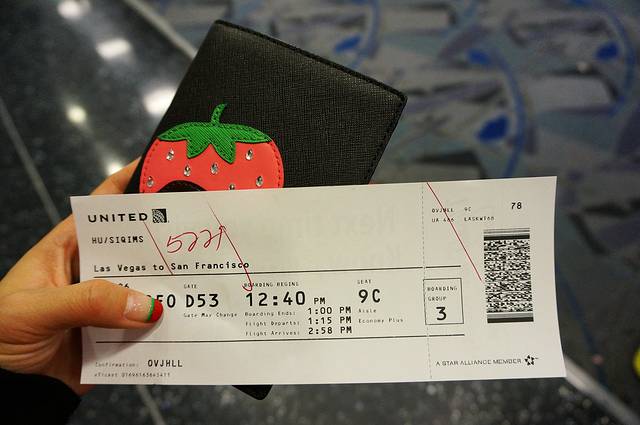 美国联合航空初体验:拉斯维加斯→旧金山。机票很便宜,一个人含税180,但不包含托运行李。需要自己在柜台前自助机器购买,每人第一件$25,第二件$35。所以最好一人一件进行托运。
