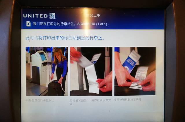 付款后把标签打印出来贴在行李上即可,也可以拿给柜台的工作人员帮忙弄。